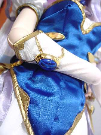 金属製でメッキによるきれいな輝きを見せています。衣装の端の